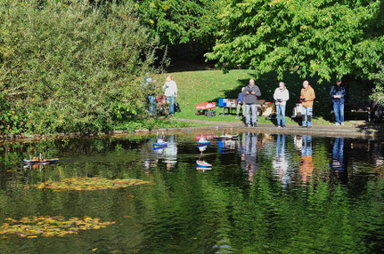 Dieses Becken ist Teil einer kleinen, ruhigen Grünanlage und läd zum beschaulichen Schippern und Üben ein.